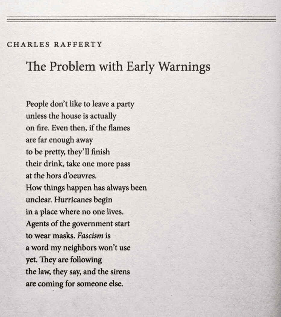 Desensitization from all these images of violence leads to an exhausted, impoverished, unhealthy electorate, a nation that no longer wants to lead, to think, to vote, or even to believe that things can change. Fascism feeds on this, this flattening of a complex reality which only requires indifference. In a world in which existence seems impossible, the masses, according to Hannah Arendt, begin "longing for fiction." Thought, critical or otherwise, becomes unnecessary (and again, the AI programs rub their six-fingered hands in glee).